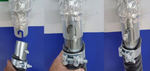 En la imagen, accesorio para el intercambio rápido de mangueras de gases de escape en el taller de automoción.