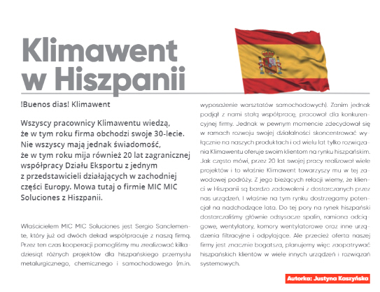 Este pasado mes se cumplió la celebración del 20 aniversario de nuestra cooperación con el fabricante de sistemas de aspiración Klimawent. Klimawent es un fabricante polaco especializado en sistemas de aspiración localizada, como brazos articulados, filtros para polvo, humos, neblinas de aceite, ventiladores y diversos accesorios. En todo este tiempo hemos importado miles de soluciones…