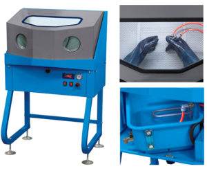 La cabina dispone de dos orificios con guantes para introducir las manos, un cristal que permite ver el trabajo que se realiza, iluminación y un pequeño ventilador para evacuar los gases.