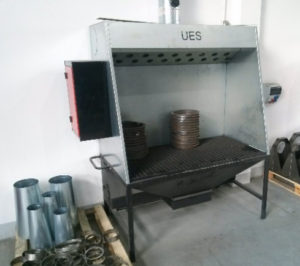 Fabricadas en acero, cuentan con una parrilla enrejillada para la recogida del polvo en un colector inferior, mientras el humo y el polvo volátil es aspirado por un panel superior ranurado.